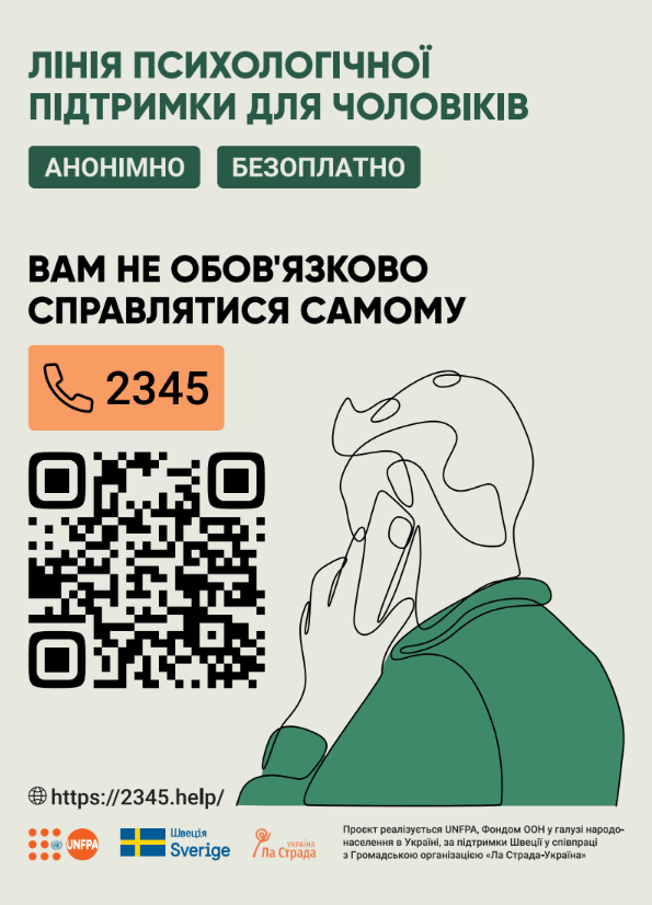 Щодня на Лінію психологічної підтримки 2345 звертаються чоловіки з різними запитами: як впоратися з тривогою, пережити втрату, налагодити стосунки з близькими або зрозуміти, що робити з постійною втомою й напругою. За даними сервісу, 76% звернень пов’язані з психоемоційним станом.