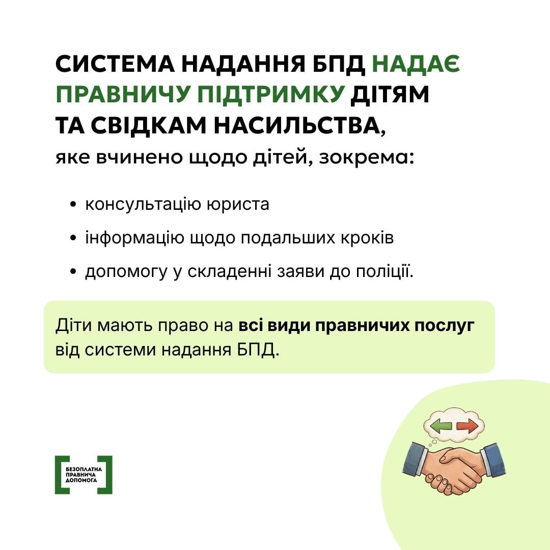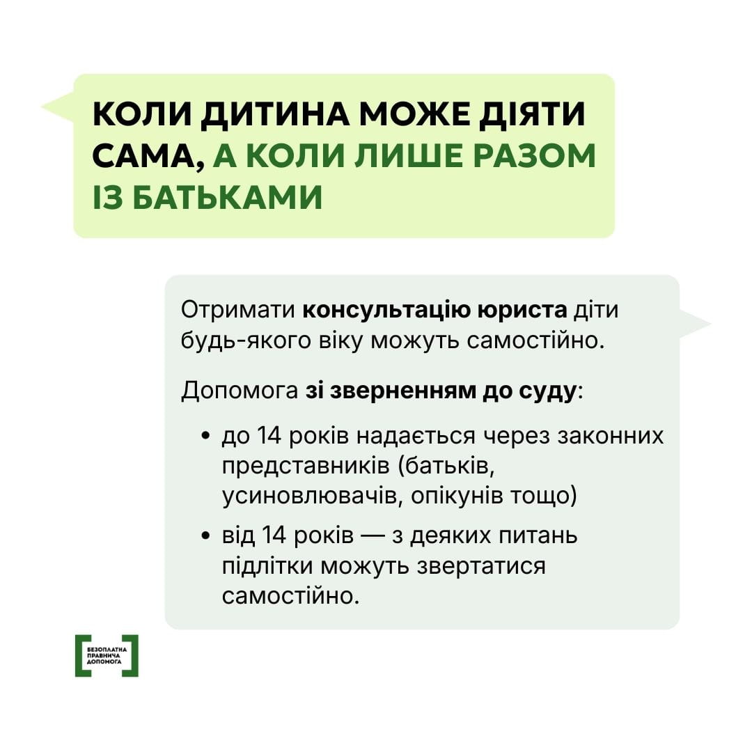 З якими юридичними питаннями можуть стикатися діти, як отримати допомогу юриста чи адвоката безоплатно та з якого віку можна звертатися самостійно — у картках, підготовлених системою надання безоплатної правничої допомоги (БПД).